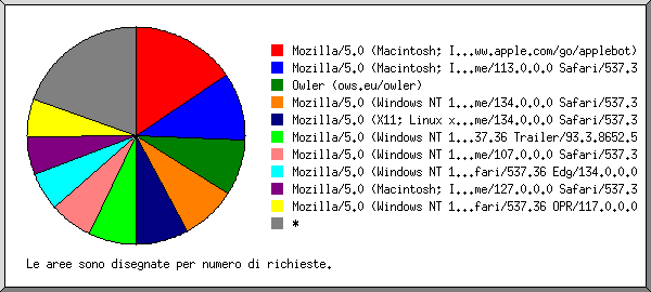 (Altre statistiche: Inizio | Sommario generale | Resoconto settimane | Resoconto giorni | Sommario giorni della settimana | Sommario ore del giorno | Resoconto domini | Resoconto organizzazioni | Resoconto host | Resoconto provenienze richieste | Resoconto browser | Sommario browser | Resoconto sistemi operativi | Resoconto directory | Resoconto richieste | Resoconto tipi di file | Resoconto dimensione dei file | Resoconto codici di stato | Resoconto insuccessi)